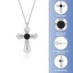 Elevate your style with our Sterling Silver 5mm Round Black Onyx Cross Pendant with White Topaz Accent on 18" Cable Chain. Timeless elegance and faith in one beautiful piece.