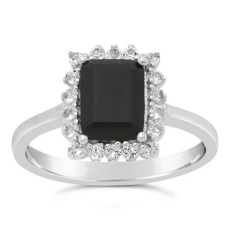 Gemminded 925 Sterling silver 8x6 MM Emerald Cut Black Onyx Ring with White Topaz Accent