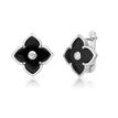 Gemminded 925 Sterling Silver Black Onyx Four Petal Flower Hinged Back Earrings with Cubic Zirconia