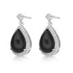Elevate your elegance with these captivating women's drop earrings, crafted in lustrous 925 sterling silver. Featuring pear-shaped black onyx stones that exude timeless mystery, each piece is accented with shimmering white topaz for added brilliance. The secure friction back ensures comfortable, all-day wear. Perfect for any occasion, these black beauties blend sophistication and bold charm effortlessly.