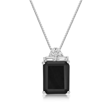 Gemminded 925 Sterling Silver Silver Emerald Cut Black Onyx Pendant with White Topaz Accent - 18" Box Chain