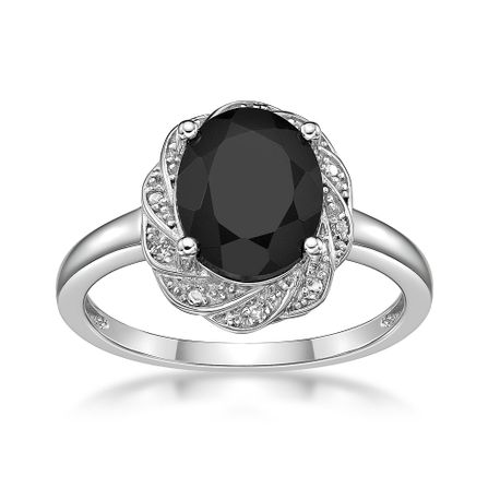 Gemminded 925 Sterling Silver Silver Oval Cut Black Onyx and 0.025 cttw Natural White Diamond Ring