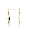 Gemminded Yellow Gold Plated Sterling Silver Black Onyx Double Four Petal Double Flower Dangle Drop Friction Back Earrings with Cubic Zirconia - Friction Back