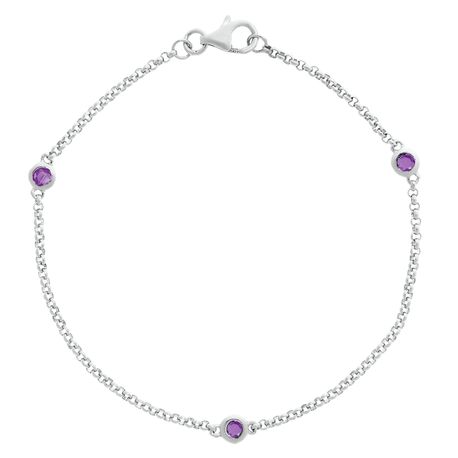 Gemminded 1 Round Amethyst 925 Sterling Silver Staiton Bracelet - 7 Inch