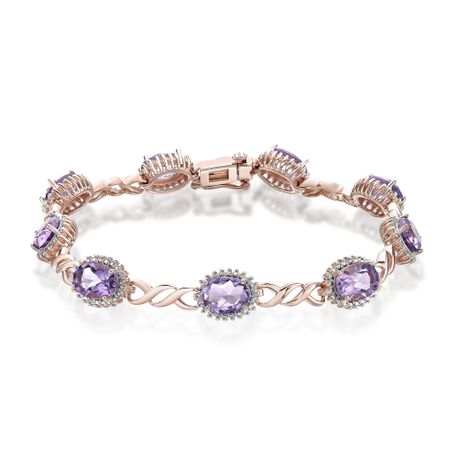 Gemminded 10.80 Oval Amethyst 925 Rose Silver Gorgeous Bracelet - 7.5 Inch