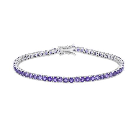 Gemminded 925 Sterling Silver Tennis Bracelet with 3 MM Round Amethyst - 7.25 Inch