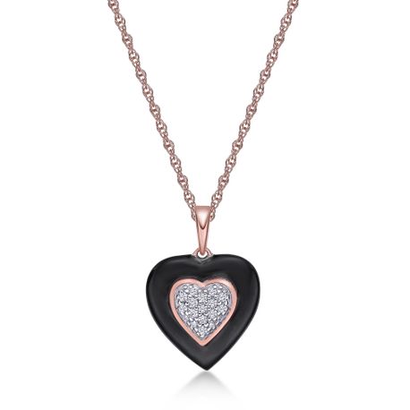 Gemminded Rose Gold Plated Sterling Silver and Piano Black Ceramic Heart Shaped Pendant with 0.03 Carat Diamonds - 18 Inch Rope Chain