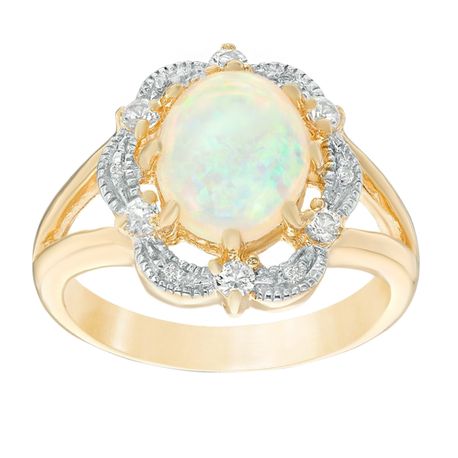 Gemminded Created Opal and White Topaz Ring in Yellow Gold Plated Sterling Silver