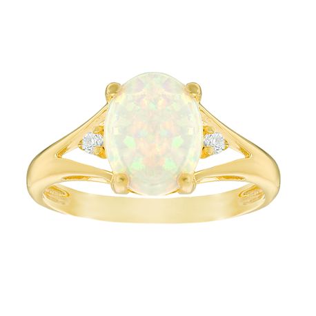 Gemminded Created Opal Women's Ring with White Topaz on Sides in 925 Yellow Sterling Silver