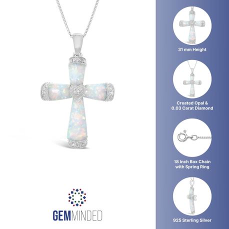 Gemminded Created White Opal Cross Pendant with .03 cttw Diamonds - Sterling Silver - 18 Inch