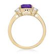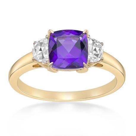 Gemminded Yellow Gold Plated Sterling Silver 7 mm Cushion Cut Amerthyst Ring with Created White Sapphire Shoulders