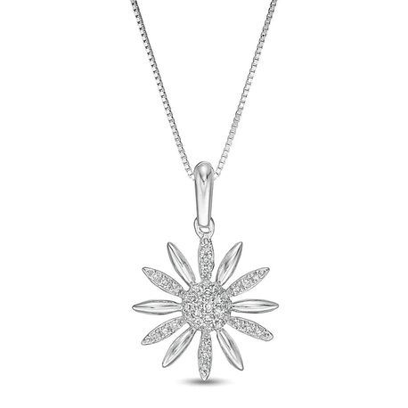 Gemminded 0.03 Diamond 10K White Gold Pedal Flower Pendant with 0.03 Round Diamonds - 18 Inch Box Chain