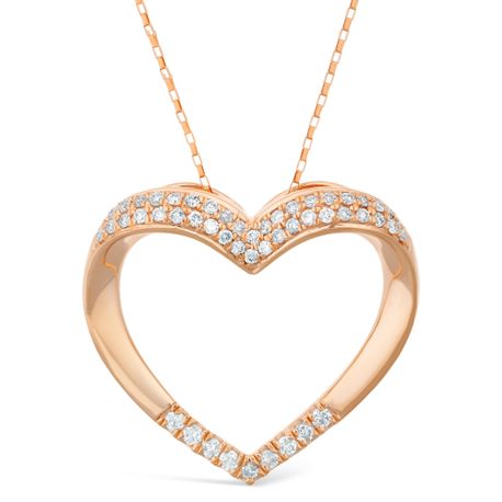 Gemminded 0.12 Round Diamonds 10K Rose Gold Curved Heart Pendant with 0.09 Round - 18 Inch Elongated Box Chain