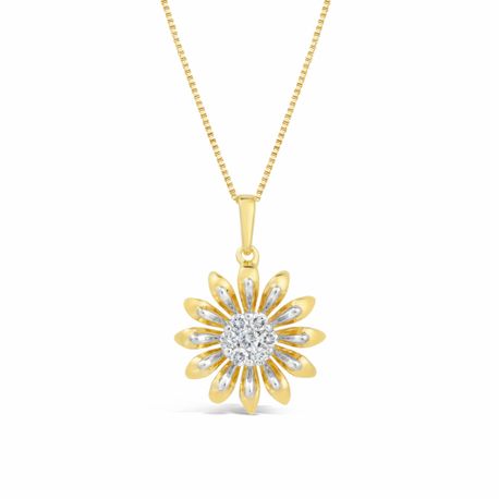 Gemminded Sterling Yellow Silver Sunflower Pendant with Diamond Accent, 0.15 Cttw