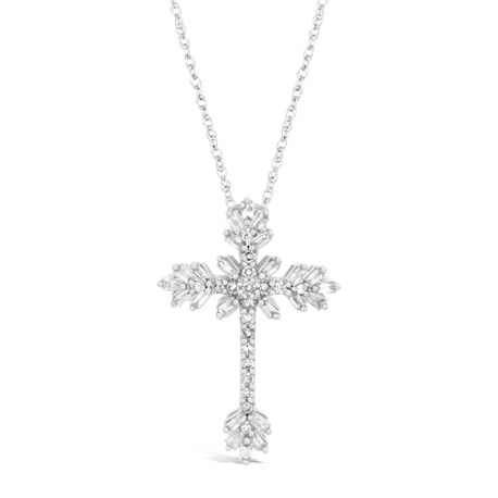 Gemminded Round and Baguette Cut Diamond Cross Pendant in White Gold, 0.33 Cttw