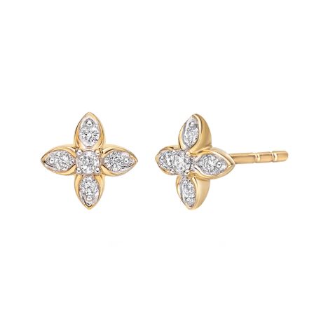 Gemminded Round Diamond 10K Yellow Gold Flower Stud Earrings