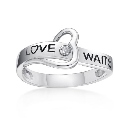 Gemminded Sterling Silver 'Love Waits' Message Ring with Diamond Accent, 0.03 Cttw