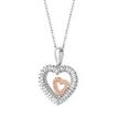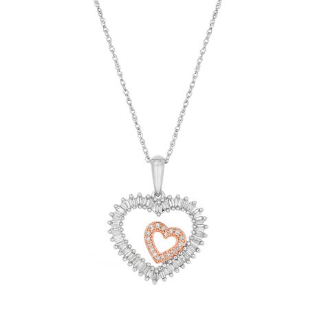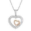 Gemminded Two Tone Gold Round and Baguette Cut Diamond Heart Pendant