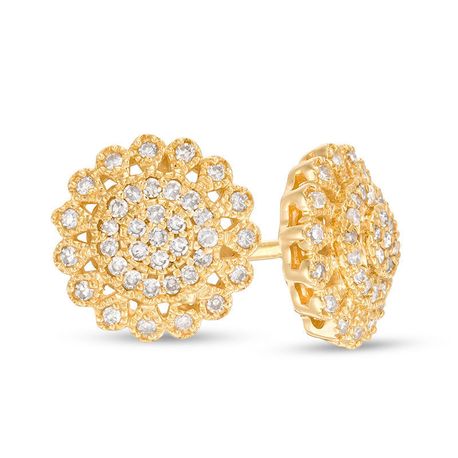 Elevate your elegance with these Women's 10K Yellow Gold Designer Earrings, featuring brilliant white diamonds that shimmer with timeless allure. Crafted for sophistication, each diamond is meticulously set to enhance sparkle, while the secure friction backs ensure all-day comfort and confidence. A perfect fusion of luxury and everyday wear—these earrings are your new go-to for effortless glamour.