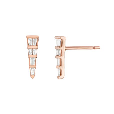 Gemminded Women's Rose Gold Triangle Stud Earrings with Diamonds