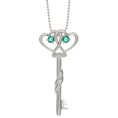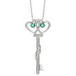 Gemminded Dual Hearts Created Emerald Key Pendant Necklace with Diamonds - Sterling Silver