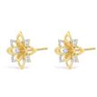 Gemminded Round Diamonds 925 Sterling Yellow Silver Layered Flower Stud Earrings, 0.12 Cttw