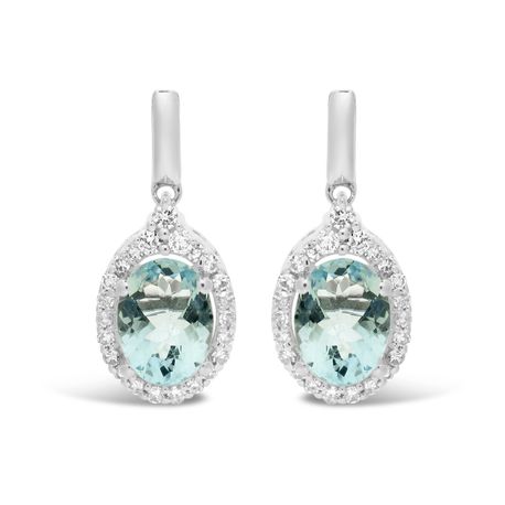 Gemminded 0.75 Oval Aquamarine 10K White Gold Vintage Earrings with - 6.5MM