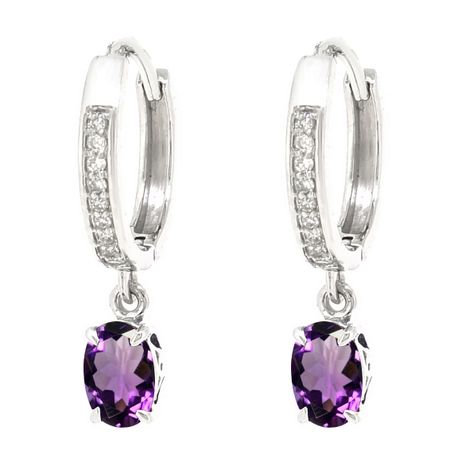 Gemminded 0.90 Oval Shaped Amethyst 925 Sterling Silver Dangling Earrings with 0.16 White Topaz - 4MM