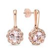 Gemminded 10K Rose Gold Drop Earrings with 5 MM Round Morganite and 0.06 Carat Diamond Halo