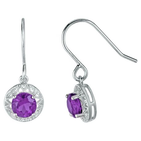 Gemminded .60 Ct Round Natural Purple Amethyst in 925 Sterling Silver Birthstone Earrings