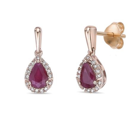 Gemminded Women's 10K Rose Gold 6x4 MM Pear Shaped Genuine Ruby Friction Back Earrings
