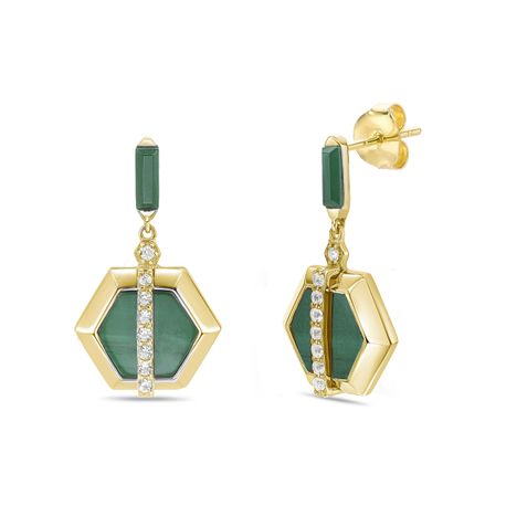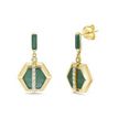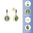 This Ear Spike Earring pairs rich malachite with luminous 2 Micron 14K Yellow Gold Plated Sterling Silver, offering bold elegance for day or night. Each spike is polished to a sleek finish and set with deep green malachite for subtle drama. Friction back closures ensure comfortable, confident wear. Hand-finished details and a refined silhouette make it ideal for stacking or solo wear, elevating everyday looks with artisanal polish.