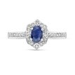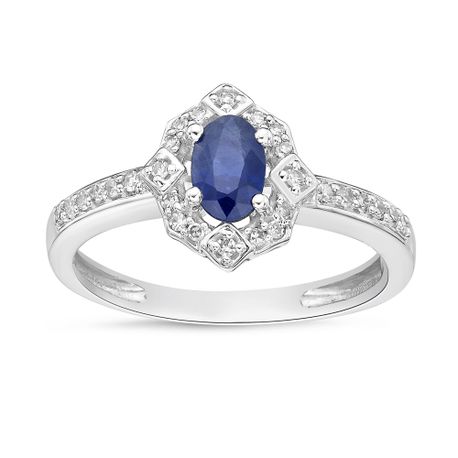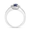 Gemminded Elegant 10K White Gold Oval Sapphire Ring with Beautiful Diamond Halo and Pavé Band - Flawless Shiny Finish