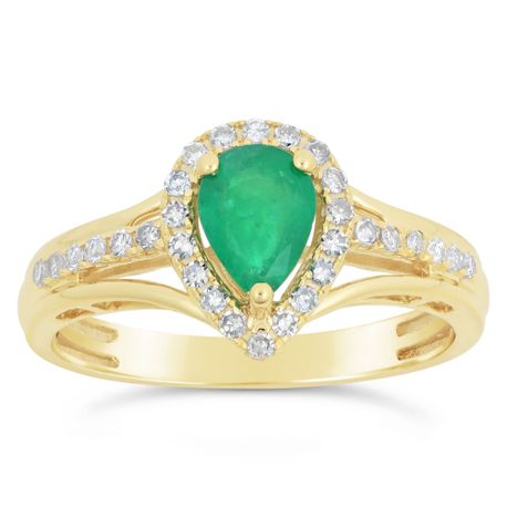 Gemminded Emerald Pear Ring with Diamond Accent in Yellow Gold