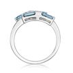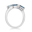 Gemminded London Blue Topaz Baguette Bypass 925 Sterling Silver Ring with White Topaz Accent