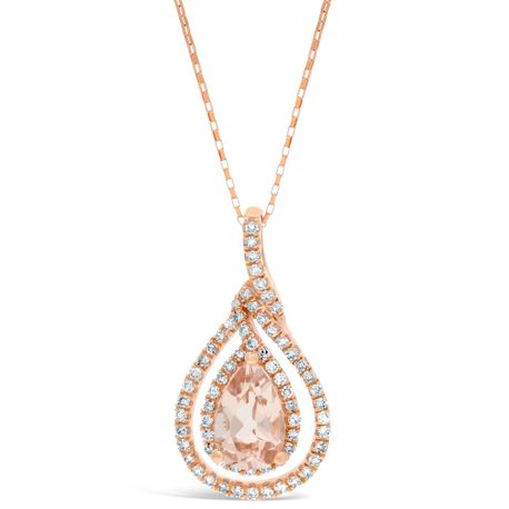 Gemminded Morganite Pear Shaped Pendant with Diamond Accent in Rose Gold