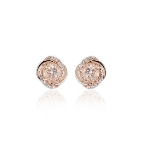 Geminded 10K Rose Gold 5MM Round Morganie Stud Earrings with 0.11 Carat Diamond Accent
