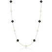 Gemmimded Black Onyx 11 Station Flower Pendant Necklace in Yellow Gold Plated Sterling Silver with Cubic Zirconia - 32 Inch Adjustable Cable Chain