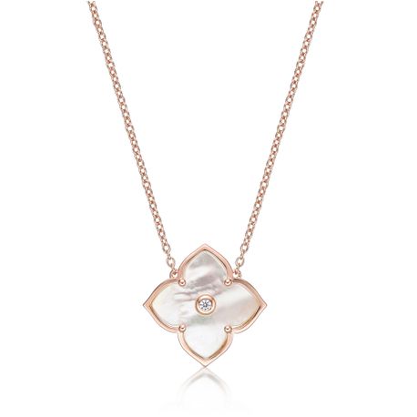 Gemmimded Mother of Pearl Flower Pendant Necklace in Rose Gold Plate Sterling Silver with Cubic Zirconia - 16- 18 Inch Adjustable Cable Chain