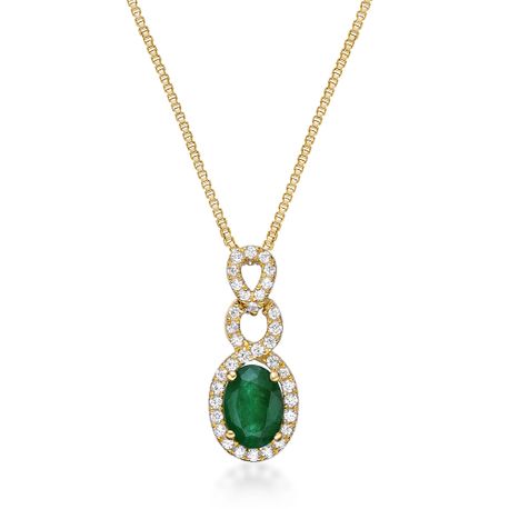 Gemminded 10 Yellow Gold 7x5 mm Oval Cut Genuine Emerald Pendant with 0.20 Carat Diamond Accent - 18 Inch Box Chain
