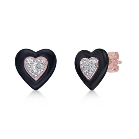 Capture the essence of elegance with these stunning rose gold plated sterling silver and piano black ceramic heart-shaped stud earrings. Adorned with 0.05 carat diamonds, these earrings are the perfect combination of sophistication and style. The friction back closure ensures your earrings stay in place all day long. Wear them for a special occasion or elevate your everyday look with these exquisite earrings. These earrings are a must-have addition for anyone trying to make a lasting impression.