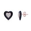 Gemminded Rose Gold Plated Sterling Silver and Piano Black Ceramic Heart Shaped Stud Earrings with 0.05 Carat Diamonds