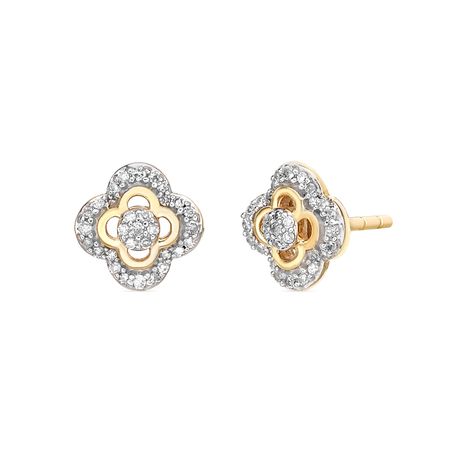 Radiate timeless charm with these Women's Clover Stud Earrings, crafted in luminous 10K yellow gold. A delicate clover design sparkles with white round diamonds, offering a symbol of luck and elegance in every glimmer. Secured with friction backs for all-day comfort and confidence, these studs blend classic style with meaningful beauty—perfect for everyday wear or special moments. A graceful gift she'll treasure forever.