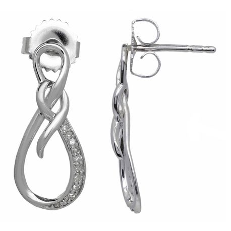 Gemminded Sterling Silver Infinity and Ribbon Drop Earrings with Diamond Accent, 0.12 Cttw