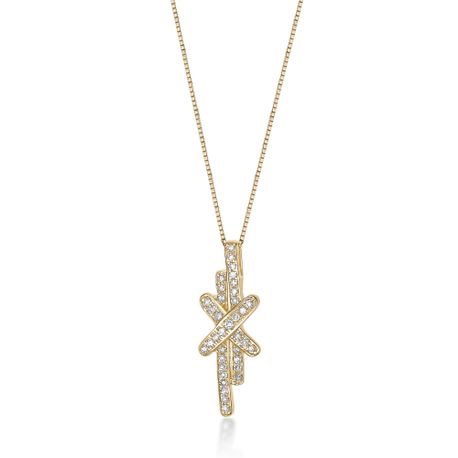 Gemminded Round Diamonds 10K Yellow Gold X Pendant with Diamonds - 18 Inch Box Chain