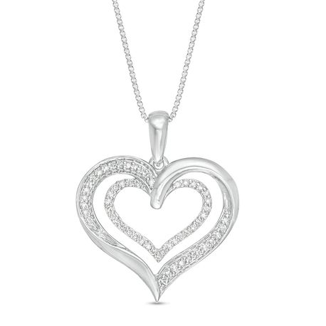Celebrate timeless elegance with this women’s double heart pendant, beautifully crafted in white 925 sterling silver. Sparkling with 0.19 cttw round diamonds, its intertwined hearts symbolize love and connection. A secure spring ring clasp ensures worry-free wear. Presented in an elegant box, it's a perfect gift for someone special—or yourself. Let your heart shine with this romantic, radiant piece.