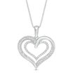 Gemminded Round Diamonds Sterling Silver Double Heart Pendant, 0.19 Cttw