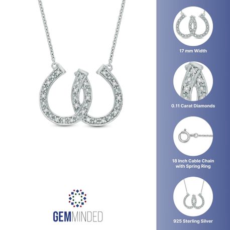 Gemminded Double Horse-Shoe Silver Pendant with Diamond Accent, 0.11 Cttw