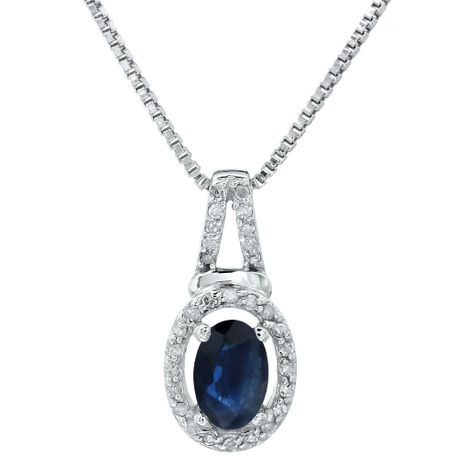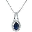 Gemminded 0.09 Carat Diamond and Blue Sapphire Pendant Necklace in 10k White Gold Oval Birthstone
