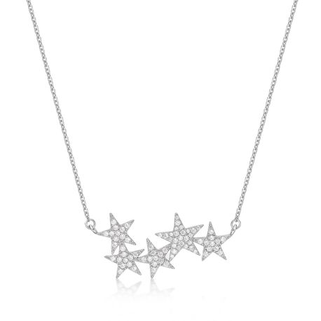 Gemminded Stars with Cubic Zirconia Bar Necklace - Sterling Silver - 18 Inch